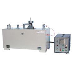 This is for measuring the abrasion resistance of low voltage wire for automobile. Both ends of the sample are fixed and the sample is contacted with the standard abrasion tape(whose pitch is 150mm) with conductive coating st intervals of 10mm. When film of the wire is worn out, the buzzer sounds and the tape stops. The length of the tape is read by the counter and this becomes the abrasion resistance value. |