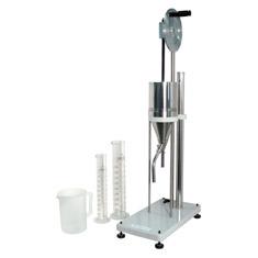 This tester is used to evaluate the freeness of pulp. By filtrating a certain amount of test specimen, the operator is to read the amount of discharged test specimen that flew out from the side tube to calculate the Schopper freeness. The down flow of the test specimen will be done by pulling up the circular coned valve upwards. |